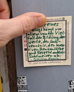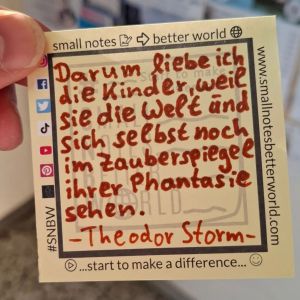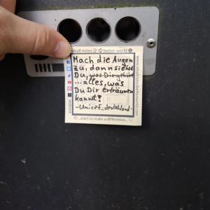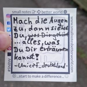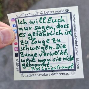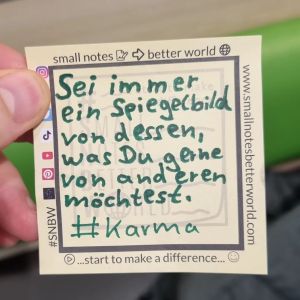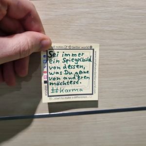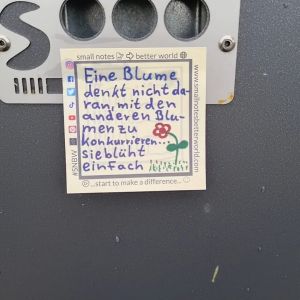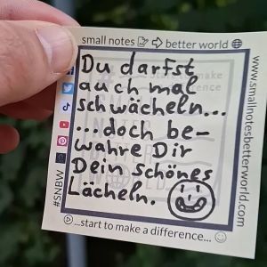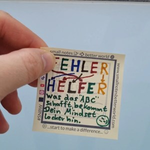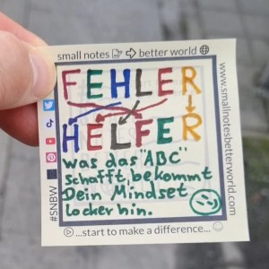 In diesem Sinne… Start to make a difference… Und kleb Deinen Mitmenschen mal wieder eine… Positive Haftnotiz 😉