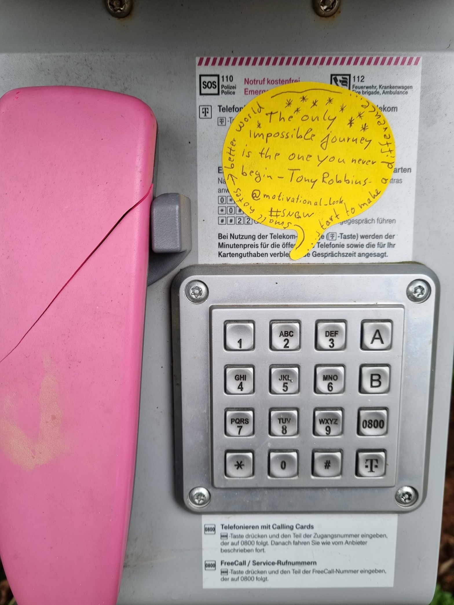 BTW: Die Haftnotiz wurde an einem öffentlichen Telefon angebracht!📞 Eine aussterbende Spezies! Wer von euch kennt denn noch die gute alte Telefonzelle? 🤔😄