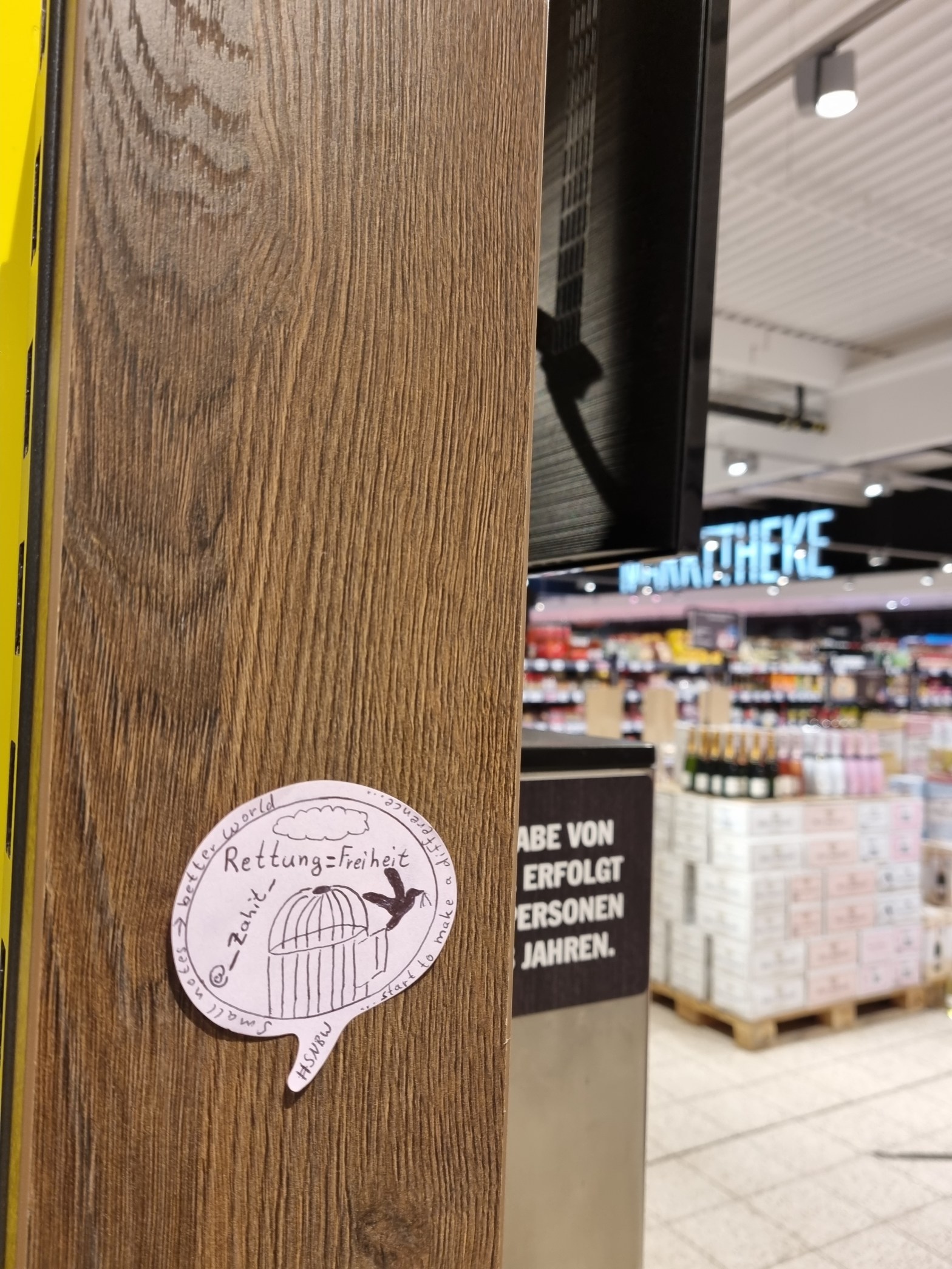 #smallnotesbetterworld#snbw#haftnotiz#straßenpoesie#startomakeadifference#alltagssuperhelden#postit#positivität#freiheit#rettung#leben#kurzermoment#supermarkt#einkaufen#einkaufenundgutestun#Community#vogelfrei#gefühlinfreiheit#persönlichkeitsentwicklung#sagesmiteinerhaftnotiz#vonmenschzumensch