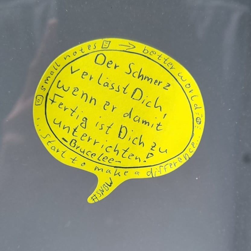 #smallnotesbetterworld#snbw#haftnotiz#straßenpoesie#startomakeadifference#alltagssuperhelden#streetart#Community#positivesmitteilen#brucelee#schmerz#unterricht#lektionen