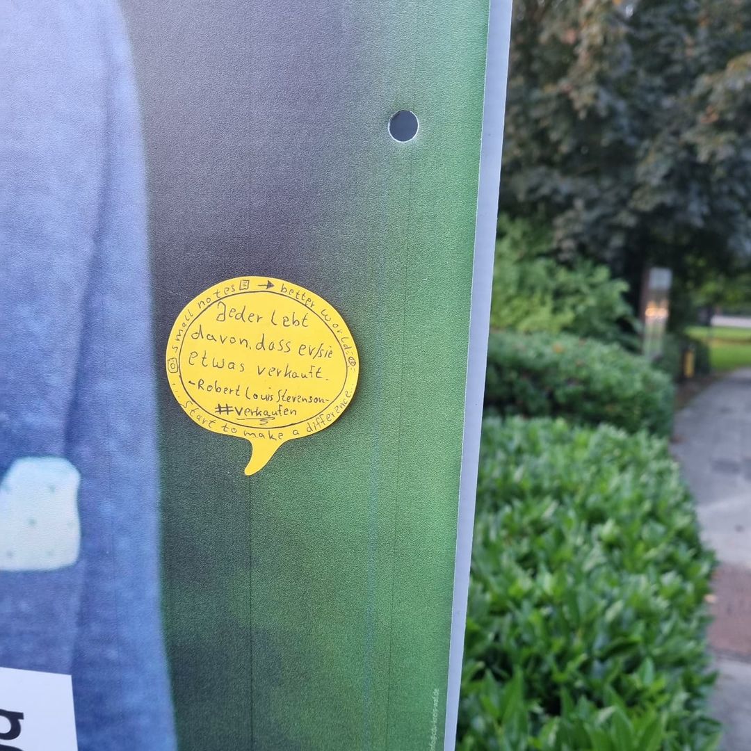 #smallnotesbetterworld#snbw#haftnotiz#straßenpoesie#startomakeadifference#alltagssuperhelden#streetart#Community#positivesmitteilen#verkaufen#sales#vertrieb#business#persönlichkeitsentwicklung#sagesmiteinerhaftnotiz#vonmenschzumensch#weltverbesserer#mitmenschenbestärken#gutestun#proaktivsein#ernährung#kind#gesundeernährung#kunden