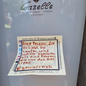 In dem Sinne… Start to make a difference… Und kleb Deinen Mitmenschen mal wieder eine… Positive Haftnotiz 🗒️😉