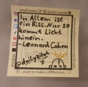 In diesem Sinne… Start to make a difference… Und kleb Deinen Mitmenschen mal wieder eine… positive Haftnotiz 🗒️😉