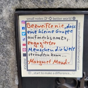 Diese Haftnotiz erinnert Dich daran, dass eine kleine Gruppe aufmerksamer, engagierter Menschen sehr wohl etwas ändern kann❗