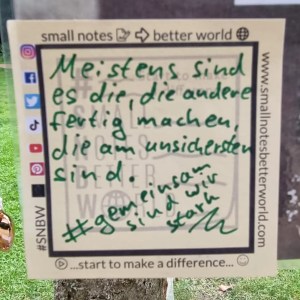 #smallnotesbetterworld #snbw #starttomakeadifference #haftnotiz #stickynote #Community #coaching #personaldevelopment #persönlichkeitsentwicklung #zitat #zitatdestages #zitateundsprüche #lieblingszitat #art #urbanart #streetphotography #street #photography #streetart #mobbing #zivilcourage #vonmenschzumensch #sagesmiteinerhaftnotiz #zweifel #selbstzweifelüberwinden #Umfeld #gemeinsamsindwirstark