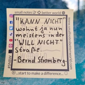 In diesem Sinne… Start to make a difference…. Und kleb Deinen Mitmenschen mal wieder eine… Positive Haftnotiz 🗒️😉