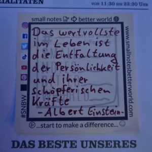 In diesem Sinne… Start to make a difference… Und kleb Deinen Mitmenschen mal wieder eine… positive Haftnotiz 🗒️😉