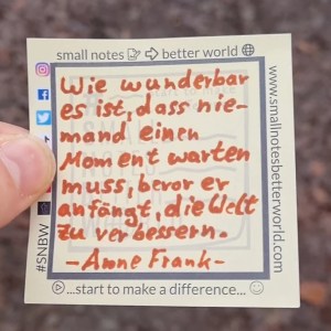 Diese Haftnotiz erinnert Dich daran, dass Du jede Menge tun kannst und Anne Frank fügt noch sehr schön hinzu, dass Du nicht damit warten musst💪