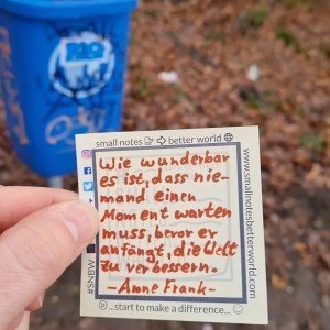 In diesem Sinne… Start to make a difference… Und kleb Deinen Mitmenschen mal wieder eine… Positive Haftnotiz 🗒️😉