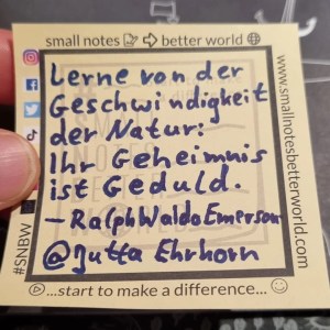 Diese Haftnotiz erinnert Dich daran, dass Du auch Mutter Natur durchaus als “Lehrmeister” ansehen darfst 🙂