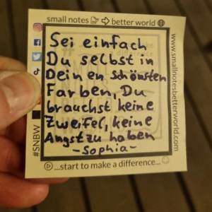 In diesem Sinne… Start to make a difference… Und kleb Deinen Mitmenschen mal wieder eine… Positive Haftnotiz 🗒️😉