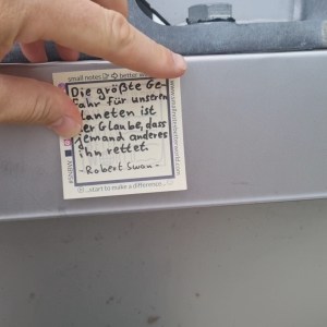 Diese Haftnotiz erinnert Dich daran, dass es immer etwas gibt, was Du tun kannst, das sich positiv auf diesen Planeten auswirkt👍