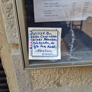 smallnotesbetterworld #snbw #starttomakeadifference #haftnotiz #stickynote #Community #personaldevelopment #persönlichkeitsentwicklung #zitat #zitatdestages #zitateundsprüche #lieblingszitat #art #urbanart #streetphotography #street #photography #streetart #straßenpoesie #vonmenschzumensch #notizzettel #reminder #Lincoln #macht #gefühle #werte