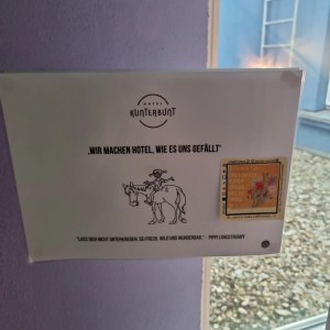 Dieser “Gutschein” kann im Hotel kunterbunt in Würzburg abgeholt werden 😊