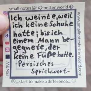 Diese Haftnotiz erinnert Dich daran, dass Dein “zu wenig” für andere Menschen auf dieser Welt ein “schön wärs” sein kann 🤔