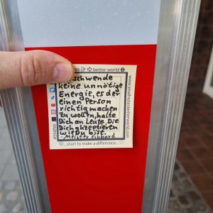 In diesem Sinne… Start to make a difference… Und kleb Deinen Mitmenschen mal wieder eine… Positive Haftnotiz 🗒😉