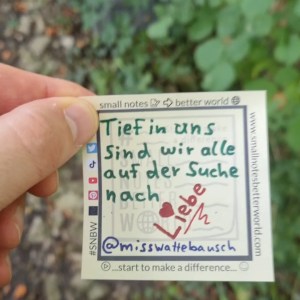 In diesem Sinne… Start to make a difference und kleb Deinen Mitmenschen mal wieder eine… Positive Haftnotiz 🗒😉