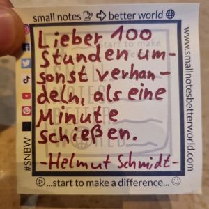 Diese Haftnotiz erinnert Dich daran, dass es sinnvoll ist stets und ständig an einer gewalttreien Lösung zu arbeiten🕊️