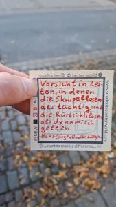 In diesem Sinne… Start to make a difference… Und kleb Deinen Mitmenschen mal wieder eine… Positive Haftnotiz 🗒️😉